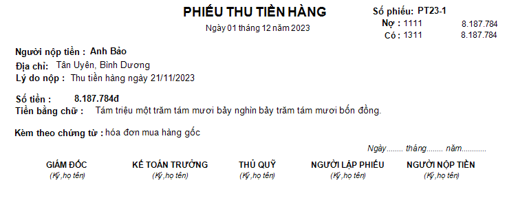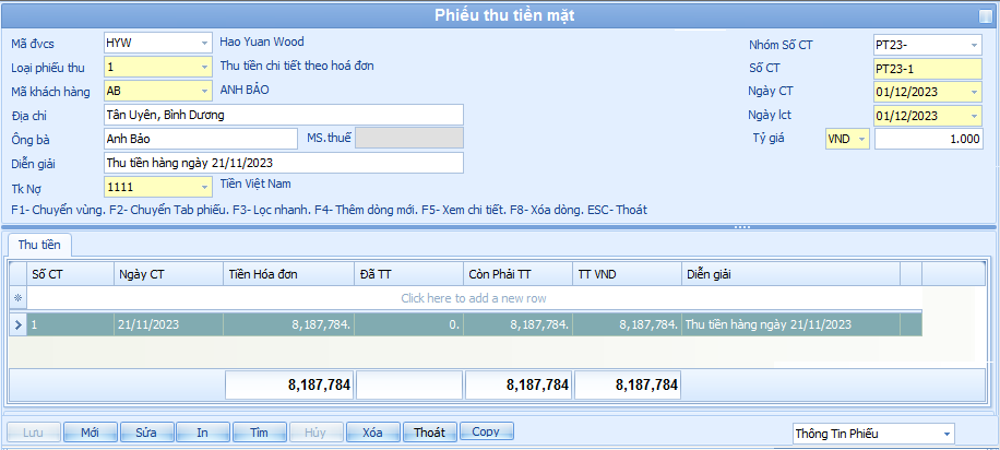 1.7. Phiếu Thu / Phiếu Chi: dùng để thu tiền khách hàng, chi tiền khách hàng, chi chi phí, ……