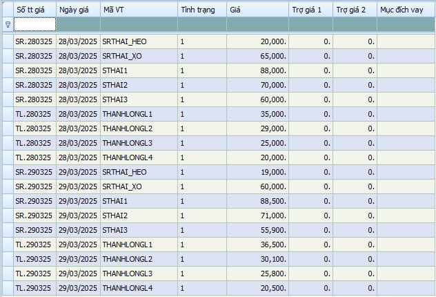 - Nhập mua nguyên liệu, phụ gia, bao bì theo bảng giá áp dụng trong ngày, hoặc có thể nhập thẳng giá mua trực tiếp trên phiếu
